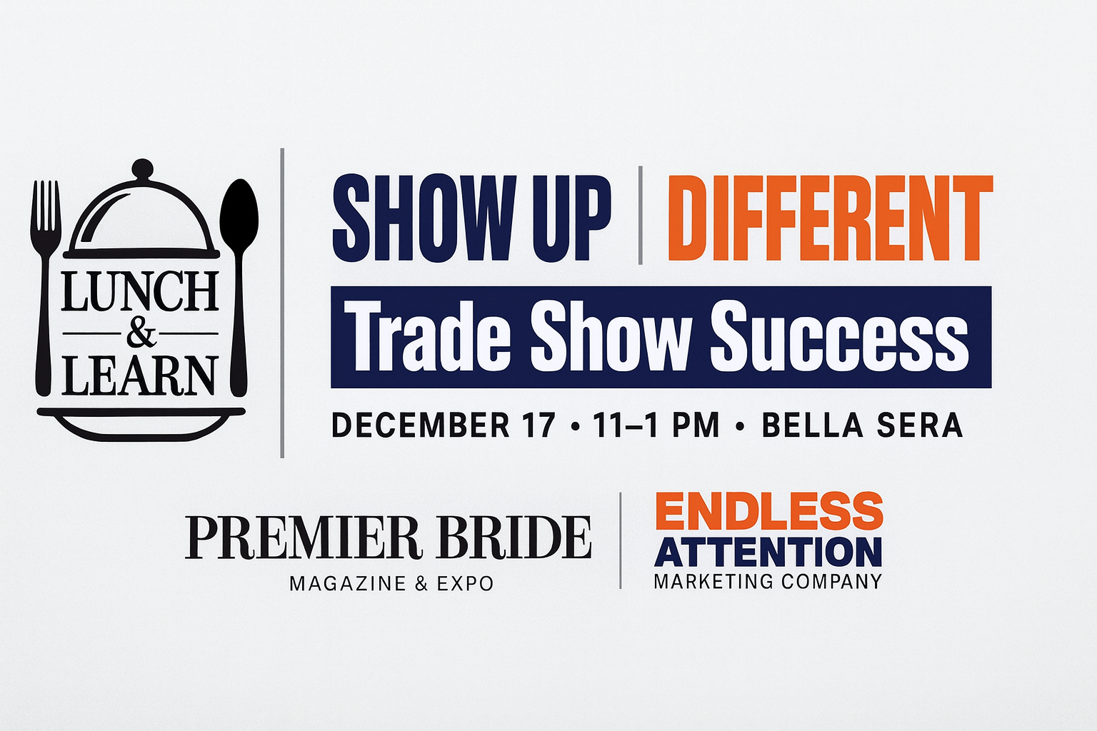 Learn how to be successful and expos! Endless Attention Marketing has had years of experience in the expo world. From being vendors to producing expos…they know it all and they are willing to share their knowledge with you. They will discuss booth design, marketing materials, lead generation and how to work the room! This will be geared towards wedding professionals but anyone who exhibits at trade shows and expos will benefit from their experience!